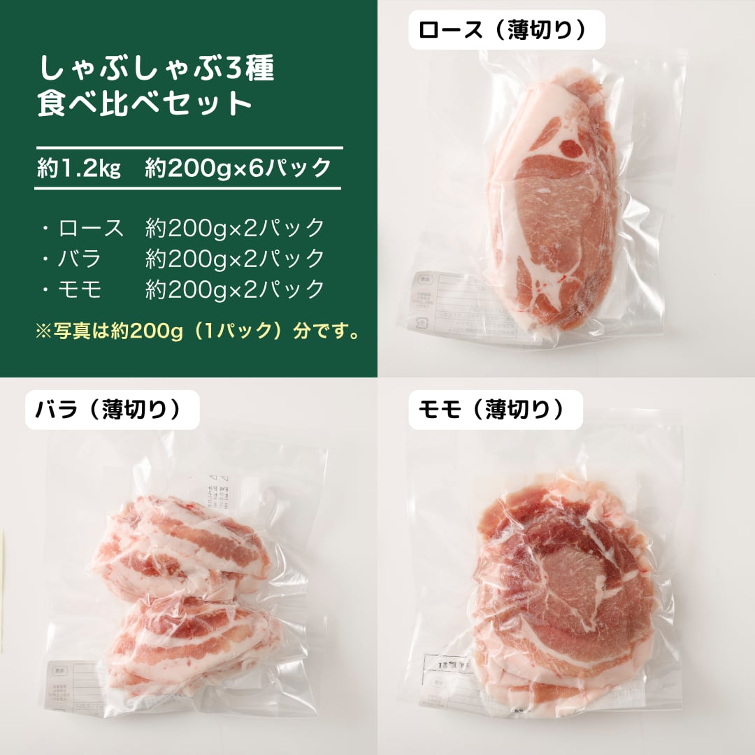 しゃぶしゃぶ3種食べ比べセット 計1.2㎏ 大分県産豚肉【米の恵み】