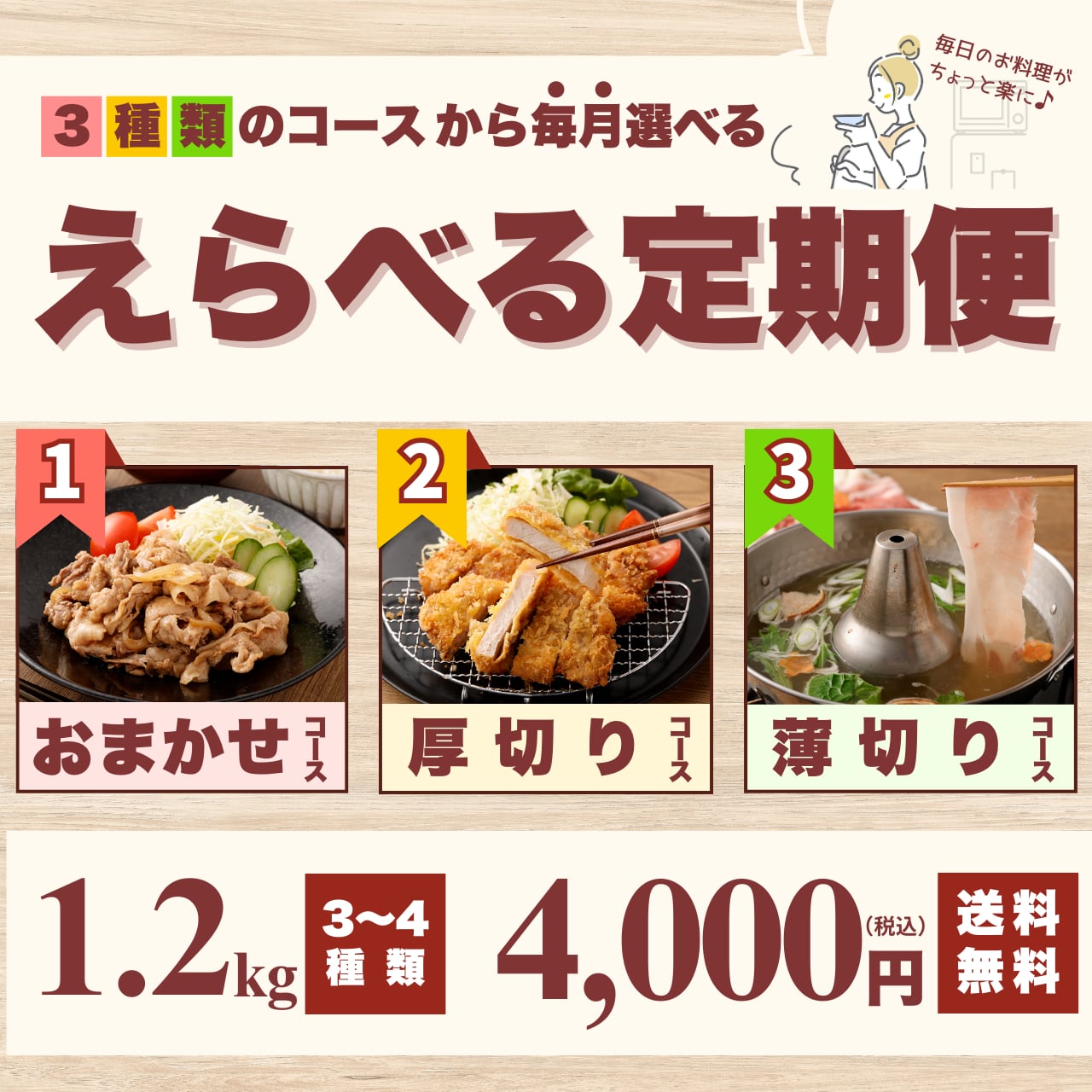 【えらべる定期便】 計1.2kg【送料無料】 大分県産豚肉【米の恵み】